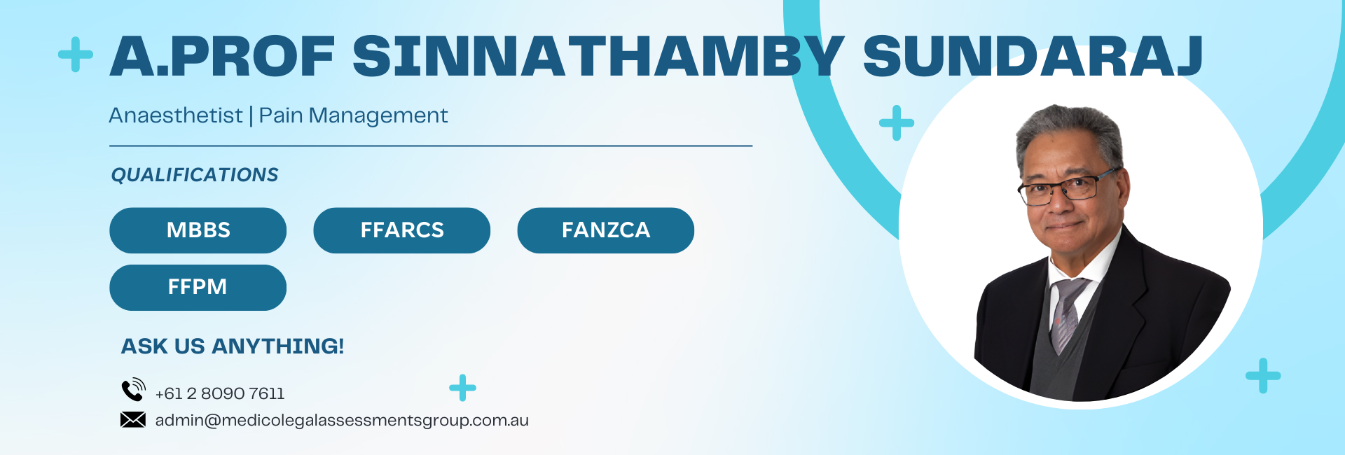 Pain management is a specialised area of medicine focused on the assessment and treatment of complex, often persistent pain conditions. In a medicolegal context, pain physicians play a key role in evaluating symptom severity, functional impact, treatment response, and the likely course of recovery following injury or illness.
